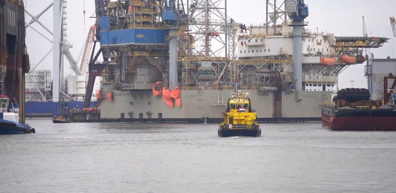 Gigantyczny półzanurzalny pływający dźwig Saipem 7000 przebywa w porcie w Rotterdamie, przy nabrzeżu należącym do stoczni Damen Verolme. Jednostka przypłynęła tam na prace konserwacyjne.