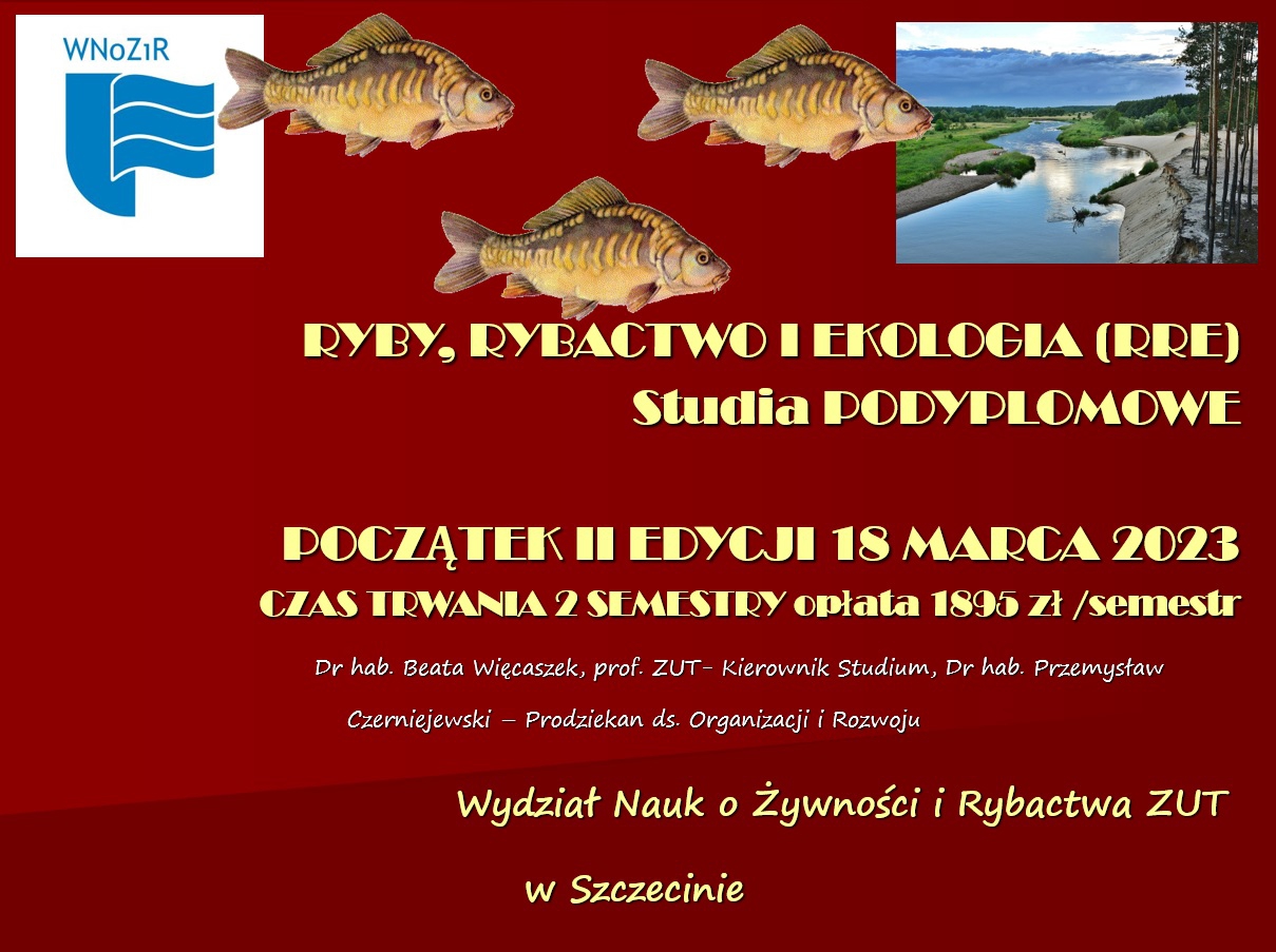 ZUT zachęca do udziału w rekrutacji na II edycję studiów podyplomowych Ryby, Rybactwo i Ekologia (RRE) prowadzone przez Wydział Nauk o Żywności i Rybactwa.
