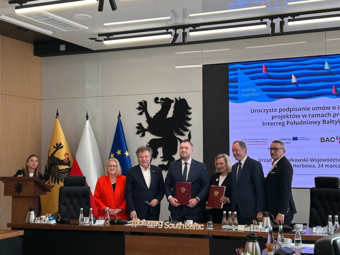 Podczas uroczystości podpisania umowy marszałek Mieczysław Struk podkreślił, że województwo pomorskie od lat aktywnie realizuje projekty w ramach programu Interreg oraz innych inicjatyw unijnych, takich jak LIFE. Wspomniał o znaczeniu zarówno dużych, strategicznych projektów, jak i mniejszych inicjatyw, takich jak trasy konne czy infrastruktura kajakowa. Zaznaczył również rolę Uniwersytetu Morskiego w Gdyni w różnych przedsięwzięciach oraz konieczność poprawy warunków transportowych w portach morskich, zwłaszcza w zakresie infrastruktury dla kierowców ciężarówek transportujących kontenery. Wspomniał, że kierowcy często muszą czekać nawet 8–10 godzin na wjazd do portu, a brakuje im odpowiedniego zaplecza socjalnego. Podkreślił, że konieczne jest wdrażanie nowych projektów, które poprawią zarówno warunki pracy kierowców, jak i wpłyną na ochronę środowiska oraz sprawne funkcjonowanie korytarza transportowego.