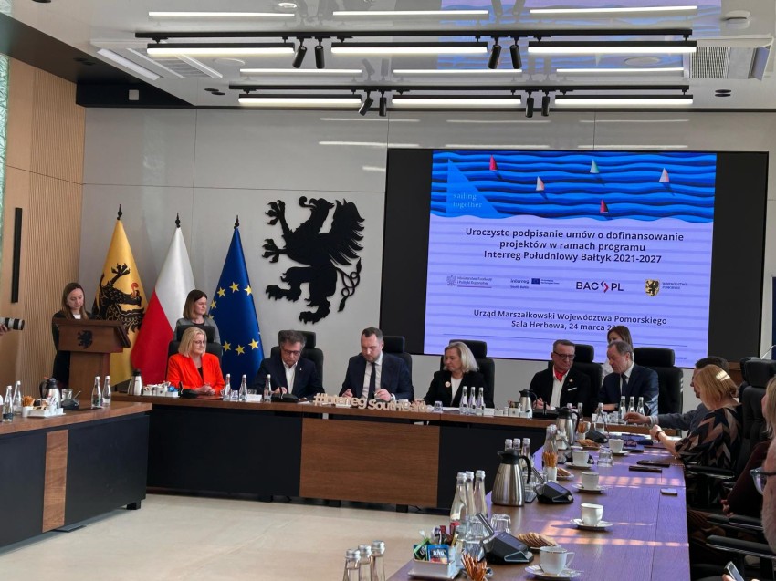 24 marca 2025 r. w Sali Herbowej Urzędu Marszałkowskiego Województwa Pomorskiego w Gdańsku odbyło się uroczyste podpisanie umowy o finansowanie projektów DeCoInter (Decarbonization of Maritime Sector and its Impact on Green Energy Transition – 9 partnerów z 5 krajów) oraz Horse Tourism for Everyone. W uroczystości wzięli udział marszałek województwa, wicemarszałek oraz minister Konrad Wojnarowski i Jacek Karnowski z Ministerstwa Funduszy i Polityki Regionalnej.