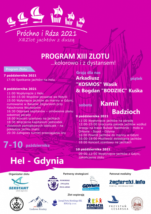 Co roku, w drugi weekend października spotykają się miłośnicy klasycznych jachtów o konstrukcjach drewnianych i stalowych. Chcą pokazać społeczeństwu kawałek pływającej historii. XIII edycja Zlotu Jachtów z Duszą "Próchno i Rdza 2021" potrwa od czwartku do niedzieli (7-10 października). W programie m.in. zwiedzanie jachtów, parada jednostek i koncert szantowy.