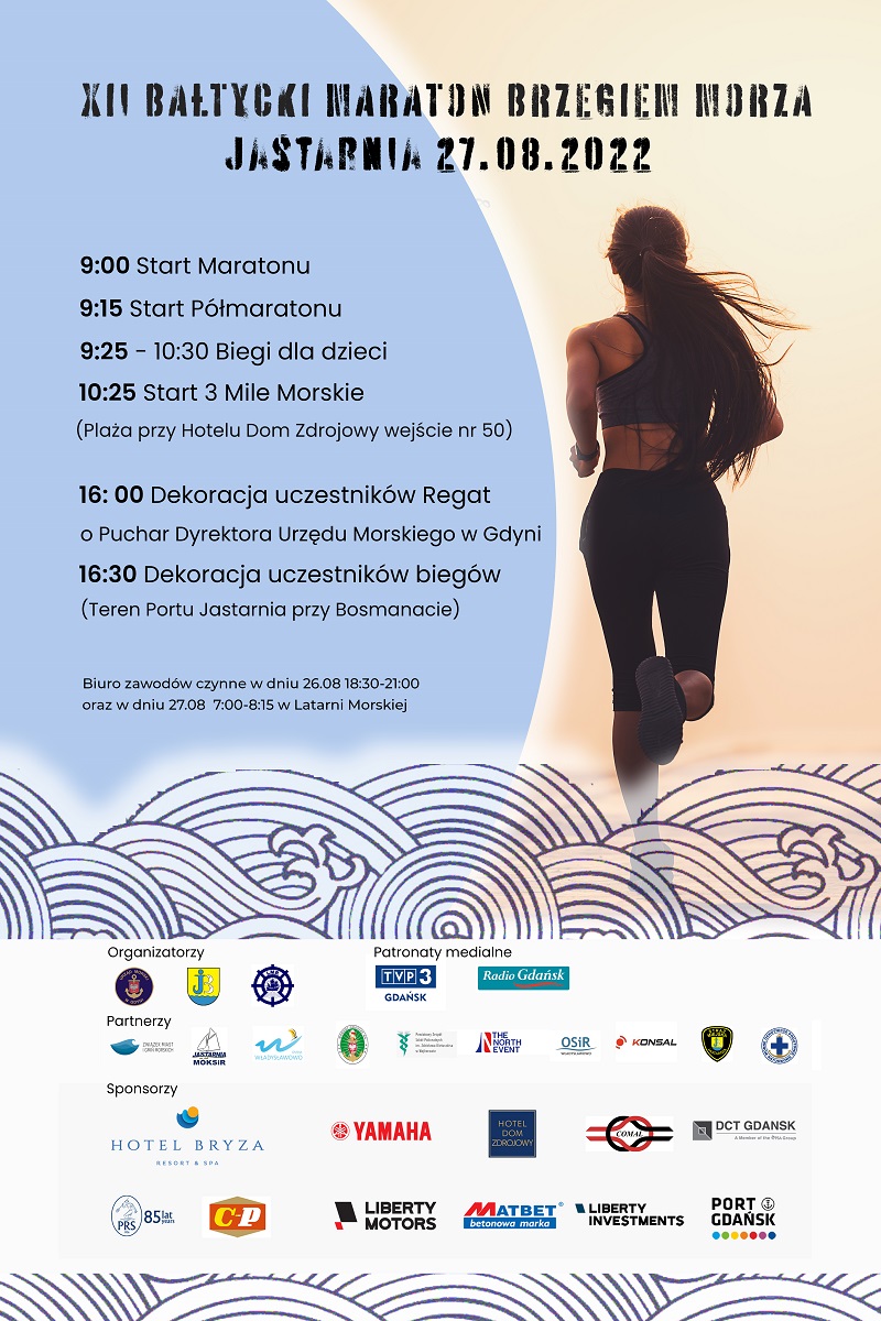 – Zapraszamy do udziału w biegu, który pod wieloma względami jest zupełnie wyjątkowy. Nazwa imprezy nie jest przypadkowa, ponieważ już bliżej linii brzegowej biegać się po prostu nie da. Jesteśmy jedynym w Polsce i drugim w Europie maratonem odbywającym się w całości po morskiej plaży. Trasą biegu jest piaszczysty brzeg obmywany przez morskie fale, co nadaje mu cech ubitej, gruntowej drogi. Dla tych wszystkich, którzy nie czują się na siłach pokonać 42 km, czy też nie chcą zbytnio eksploatować się przed jesiennymi maratonami, stworzyliśmy możliwość przebiegnięcia dystansu o połowę krótszego, a dla poczatkujących i nie mających czasu na wcześniejsze przygotowania bieg na dystansie 3 mil morskich – zachęca Magdalena Kierzkowska, rzeczniczka Urzędu Morskiego w Gdyni, organizatora imprez.